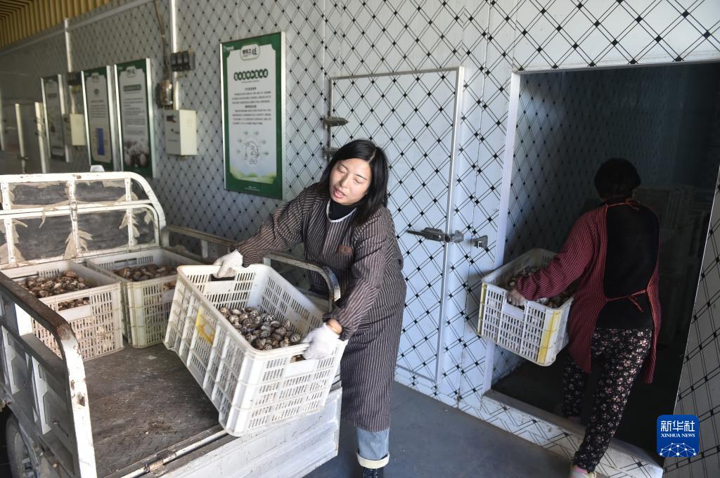 12月7日,朱寨村村民将采摘的香菇搬进冷库临时存放,准备外销。