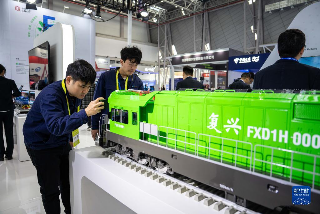 12月8日,在株洲国际会展中心,观众在拍摄列车模型。