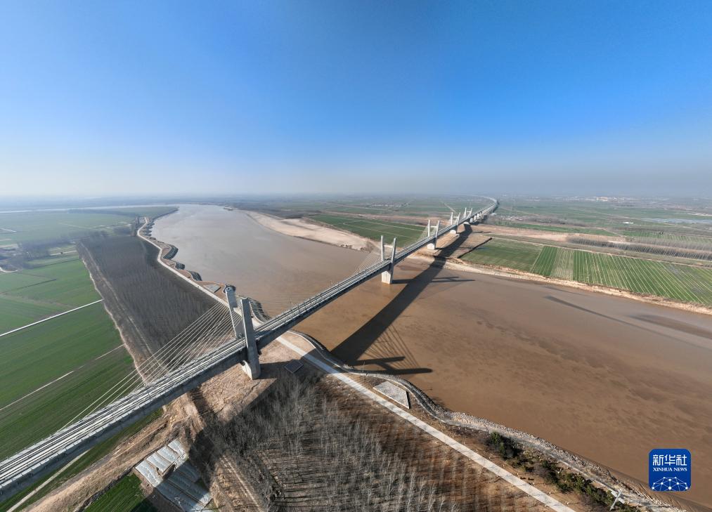 12月8日拍摄的济郑高铁长清黄河铁路特大桥(无人机照片)。