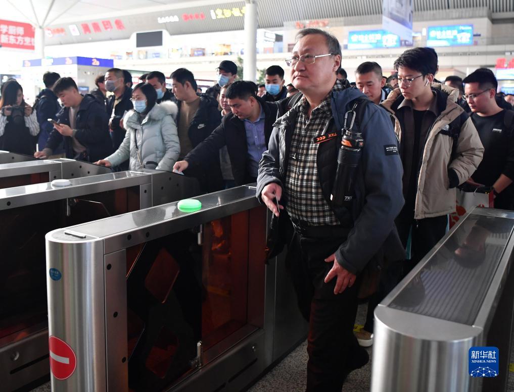 12月8日,乘坐济郑高铁郑州东站首发G4830次列车的旅客在郑州东站检票进站。