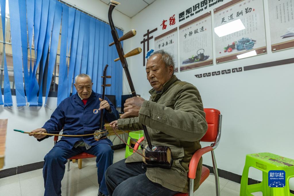 12月7日,在重庆市丰都县三元镇滩山坝社区的“新丰书院”,当地居民在拉二胡。