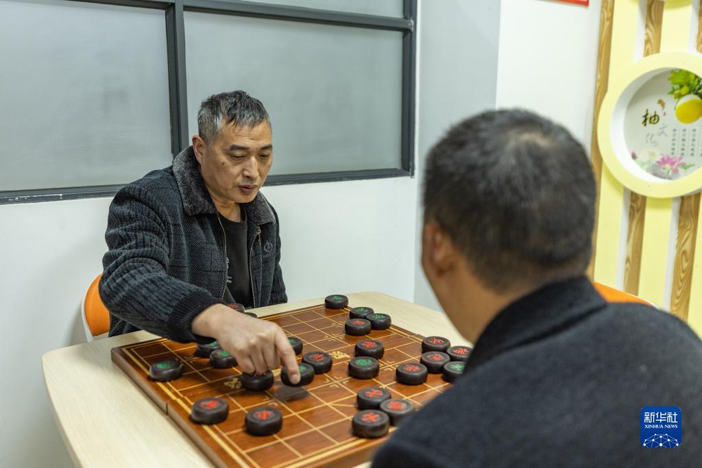 12月7日,在重庆市丰都县三元镇滩山坝社区的“新丰书院”,当地居民在下象棋。