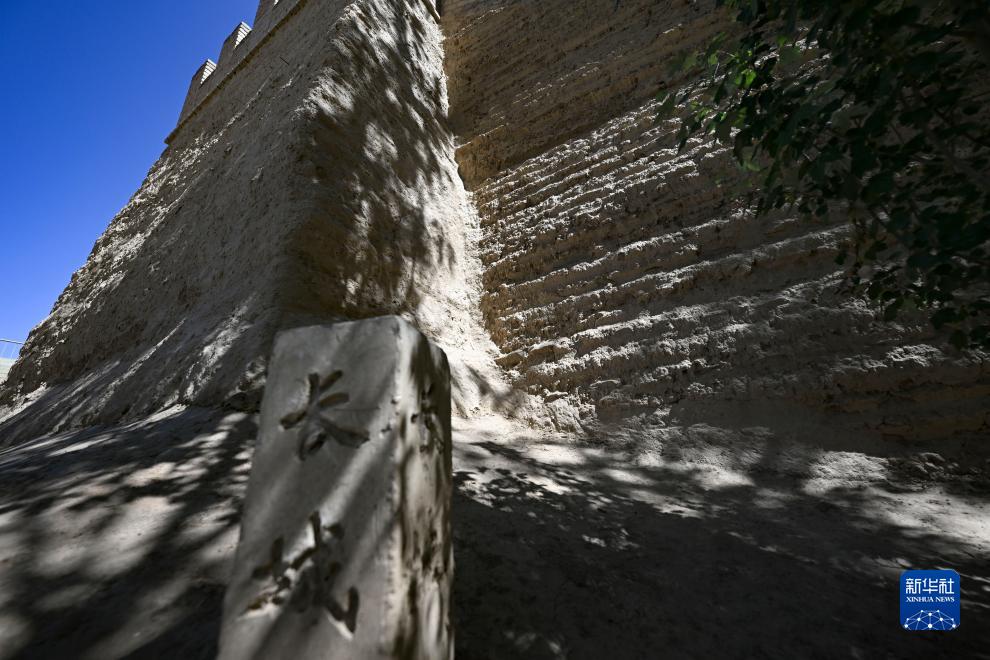 这是7月13日拍摄的嘉峪关石关峡长城一段墙体。经修缮人员向墙体注入PS材料(一种高模数的硅酸钾溶液)后,受损墙体得到加固。