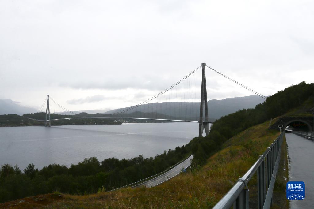 这是2023年9月4日拍摄的位于挪威北部港口城市纳尔维克附近的哈罗格兰德大桥。