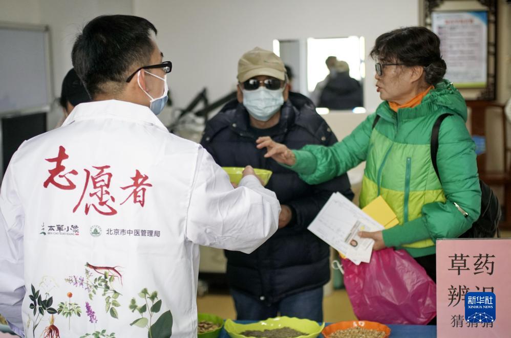 居民在丰台区成寿寺街道社区卫生服务中心举办的“中医药文化科普活动”上参加闻香识中药活动(12月8日摄)。