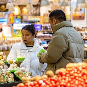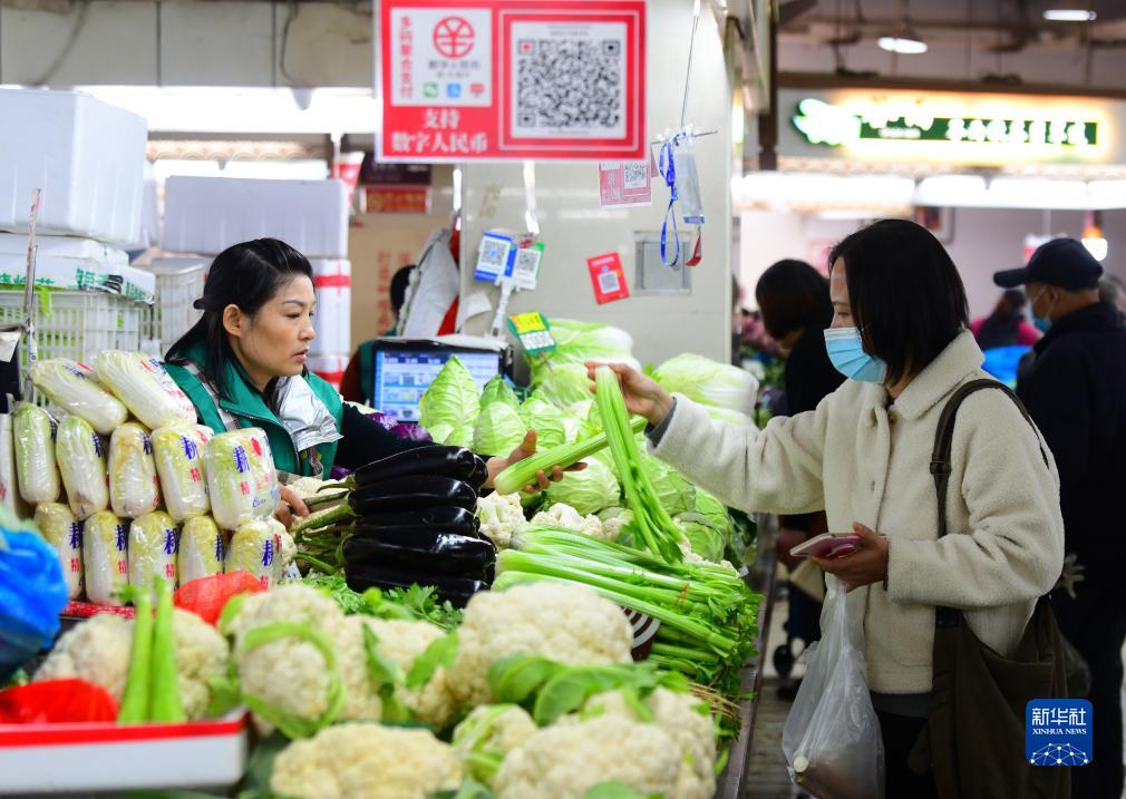 12月9日,顾客在江苏省无锡市一家农贸市场选购蔬菜。