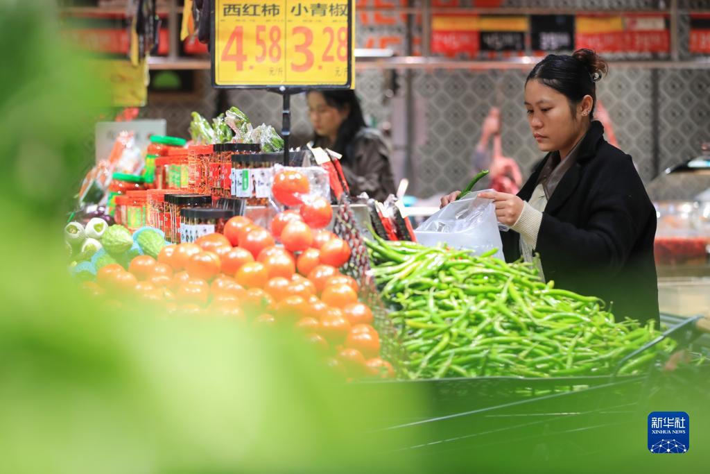 12月9日,顾客在贵州省从江县一家超市选购蔬菜。
