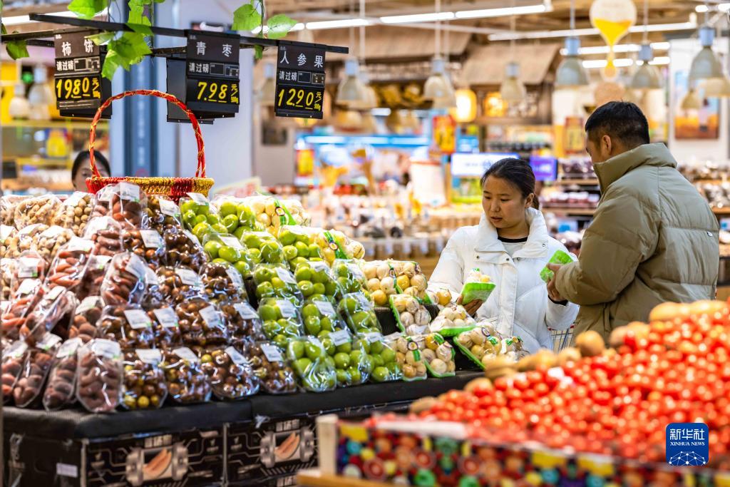 12月9日,消费者在贵州省安顺市西秀区一家超市选购水果。
