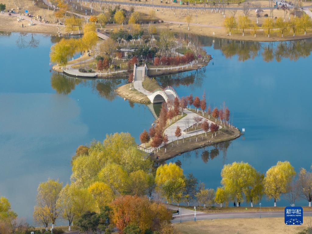 12月9日拍摄的安徽省合肥市肥东县和睦湖公园景色(无人机照片)。
