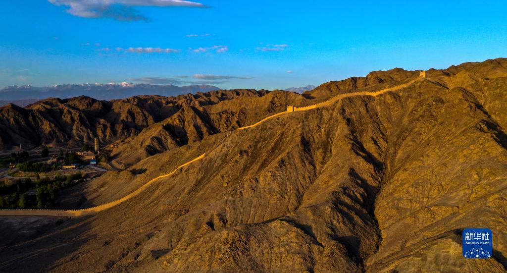 位于甘肃省嘉峪关市的悬壁长城(7月15日摄,无人机照片)。