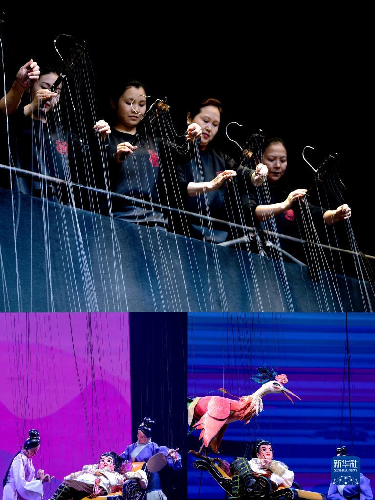 这是在开幕式上,来自泉州的木偶艺术家表演的剧目《小金刚传奇》(拼版照片,12月9日摄)。该剧作品巧妙融入提线、杖头、掌中木偶、LED数字影像等多种元素,曾获得第八届福建艺术节暨第二十八届全省戏剧会演优秀剧目奖(最高奖)。