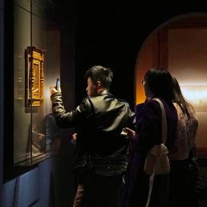 12月10日,观众在参观文艺复兴艺术作品(右)与中国古代绘画作品。