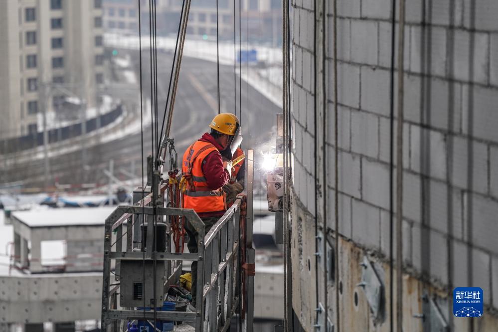 12月12日,工人在位于北京市海淀区的一处工地上进行施工作业。