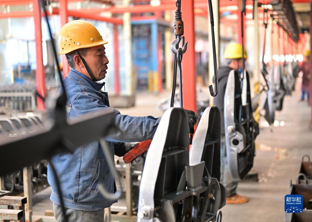 12月12日,工人在河北省唐山市丰南区一家汽车配件企业的生产车间工作。