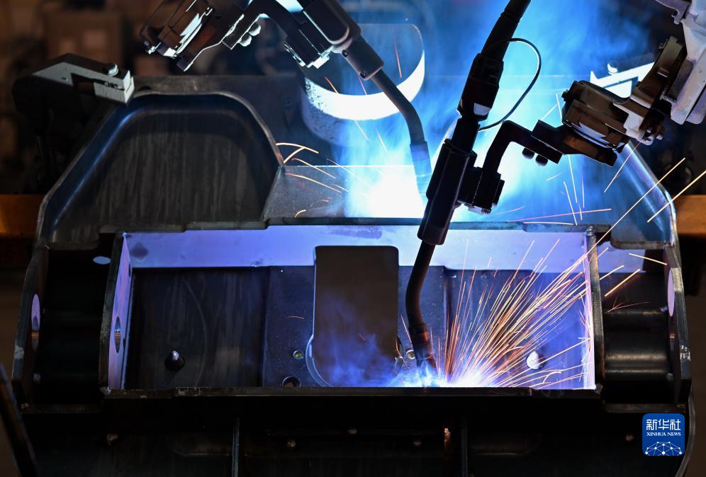12月12日,河北省唐山市丰南区一家汽车配件企业的焊接机器人在工作中。