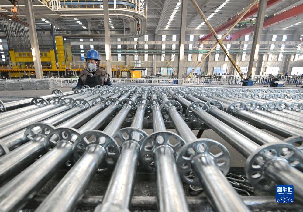 12月12日,工人在河北省唐山市丰南区一家新型建筑器材企业的生产线上工作。