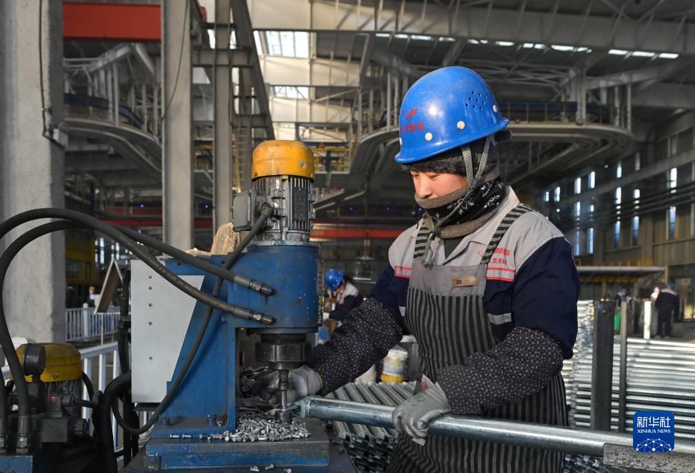 12月12日,工人在河北省唐山市丰南区一家新型建筑器材企业的生产线上工作。