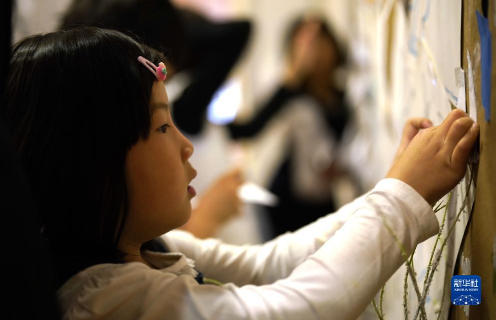 12月10日,一名女孩在美国旧金山举行的“南京祭”活动上张贴祈愿寄语。