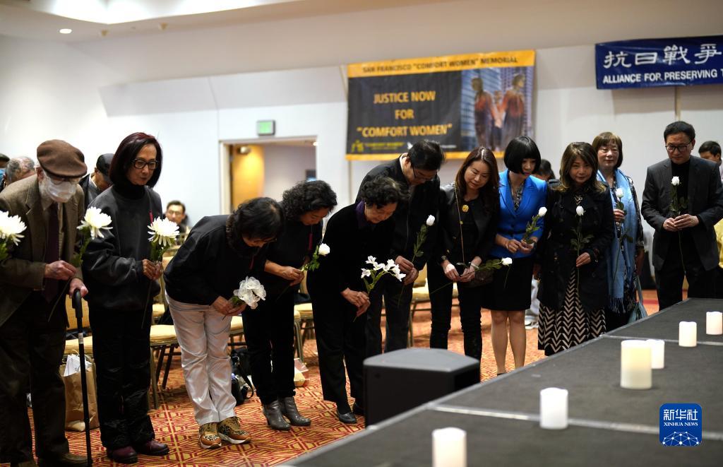 12月10日,人们在美国旧金山举行的“南京祭”活动上献花。