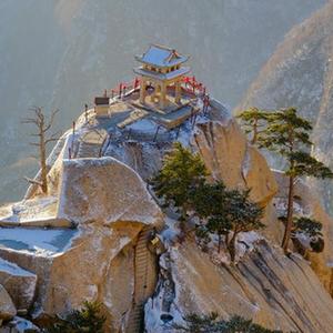 雪后的西岳华山,峰峦起伏,皑皑白雪点缀山间,宛若画卷。