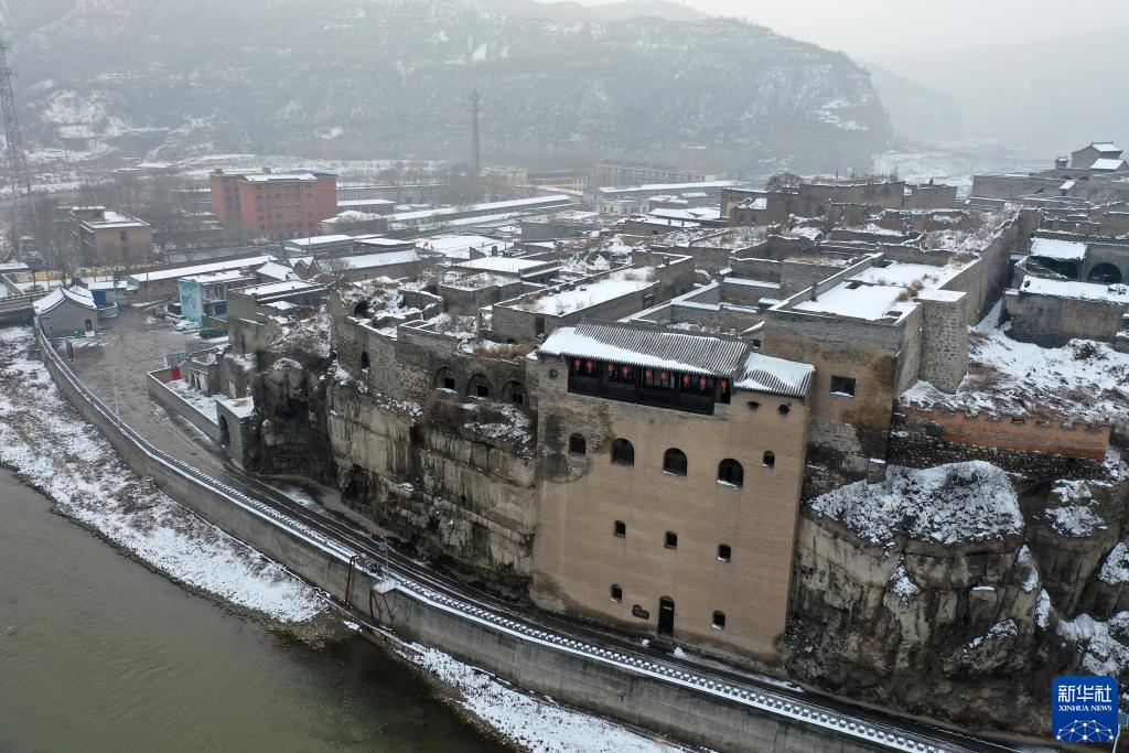 山西省灵石县夏门古堡(无人机照片,12月12日摄)。