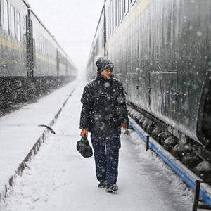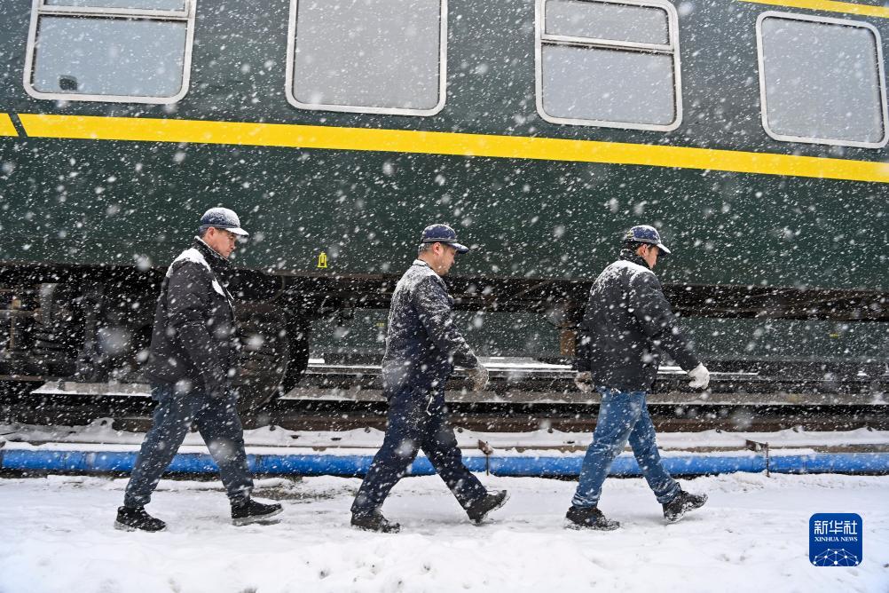 当日,山西省太原市迎来降雪天气,中国铁路太原局集团有限公司太原车辆段对入库列车加强日常检修力度,确保旅客列车运行安全。
