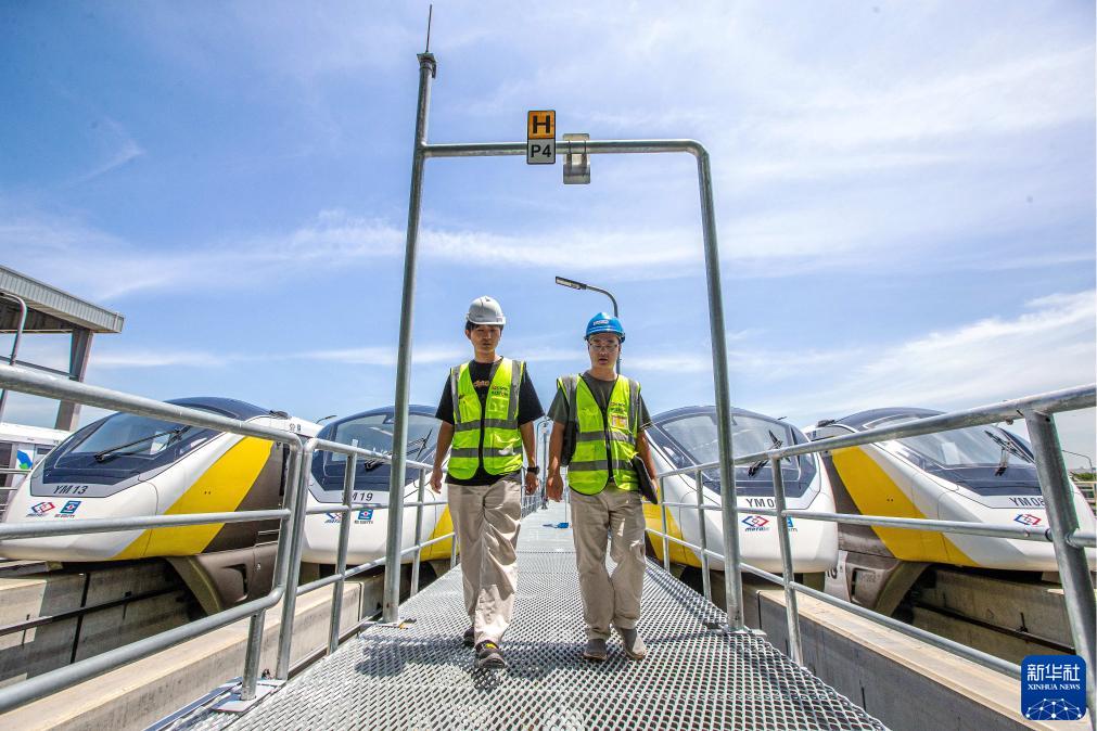 9月22日,负责检修列车的中车浦镇阿尔斯通运输系统有限公司工作人员走在泰国曼谷“黄线”列车维护中心。
