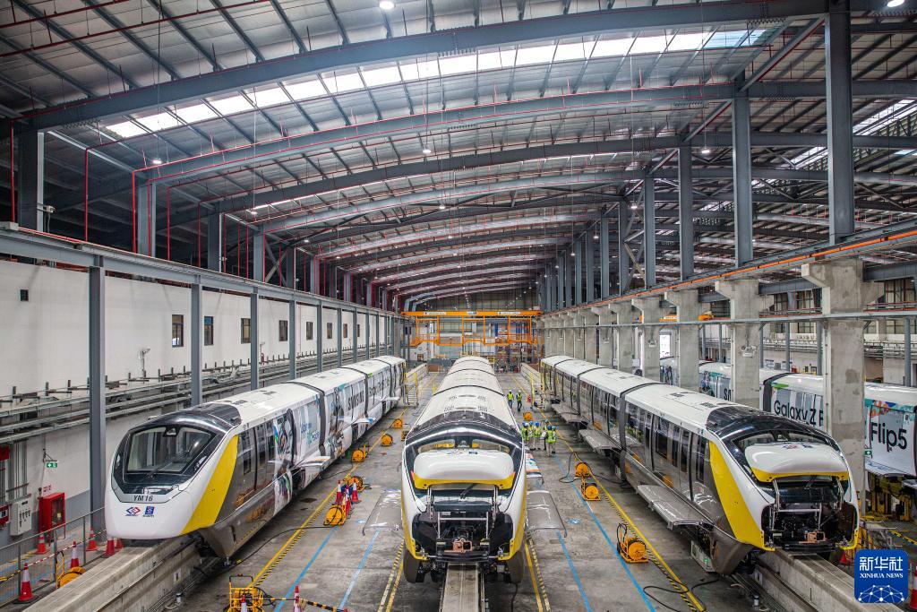 这是9月22日在泰国曼谷拍摄的“黄线”列车维护中心。