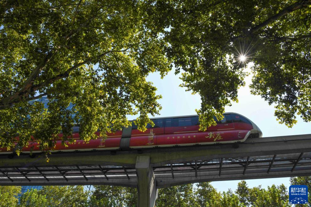 9月18日,一辆单轨列车行驶在安徽芜湖市区。