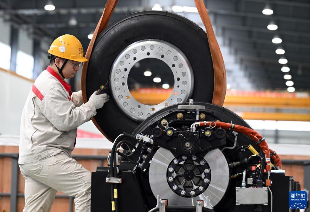 9月13日,在位于安徽芜湖的中车浦镇阿尔斯通运输系统有限公司内,工作人员进行转向架走行轮组装。