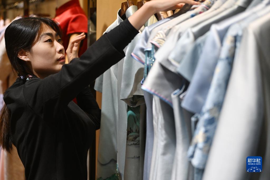 这些师傅中既有50多岁的非遗传承人,也有毕业不久学服装设计的大学生。他们在保留传统案工、手工缝制的基础上,注重融入创新元素,使得老美华的产品在推陈出新的同时兼顾传统之美。