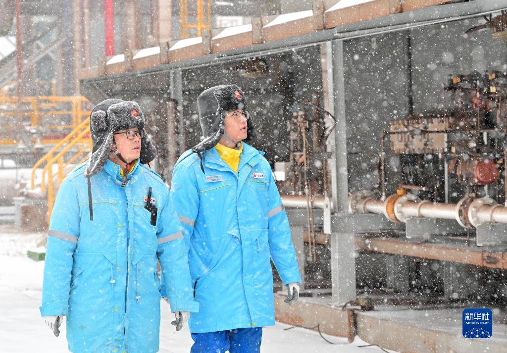 12月14日,河北省唐山市曹妃甸区中石油唐山LNG接收站工作人员在厂区巡查。