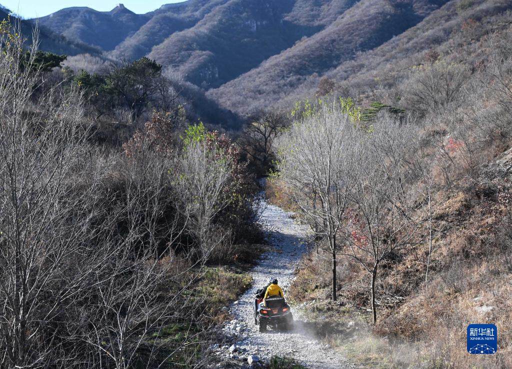 李哲驾驶越野车和学生一起在野外作业(11月3日摄)。