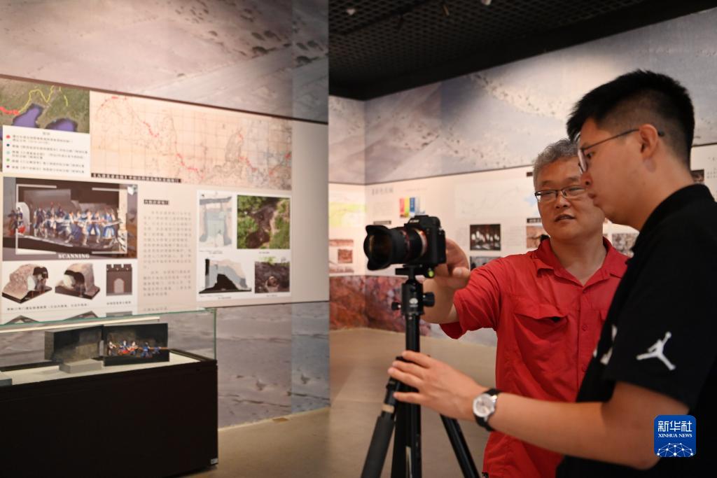 李哲(左)和学生在天津博物馆进行撤展前的记录工作(7月6日摄)。