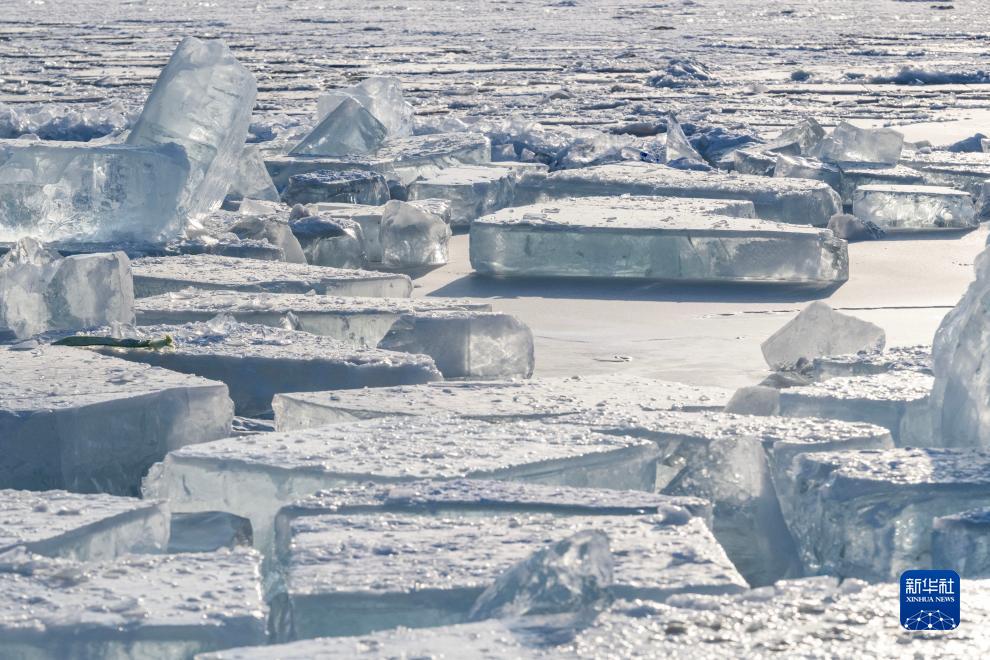 眼下,第二十五届哈尔滨冰雪大世界采冰工作已全面展开。在封冻的松花江哈尔滨段江面,采冰工人肩扛手拉,从封冻的松花江里采出一块块晶莹剔透的冰块,运冰车、叉车、铲车在江畔往来穿梭,呈现一派热火朝天的繁忙景象。
