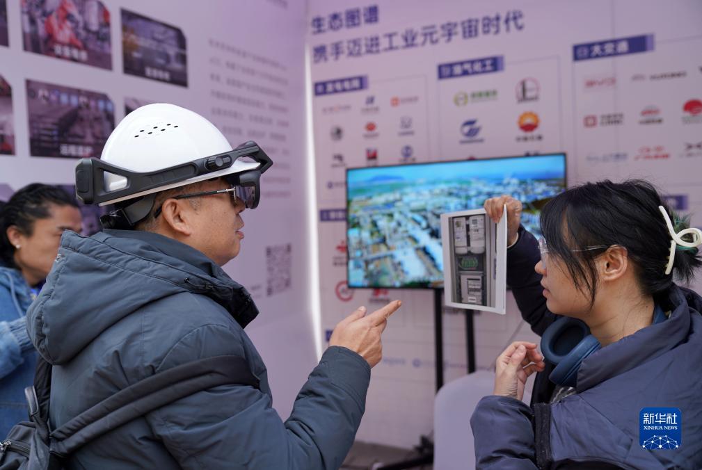12月15日,与会嘉宾在参会企业展台前体验一款5G工业AR智能眼镜。