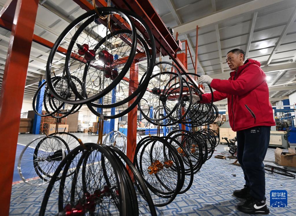 在飞鸽自行车的一处工厂内,工作人员在车间整理自行车零部件(12月13日摄)。