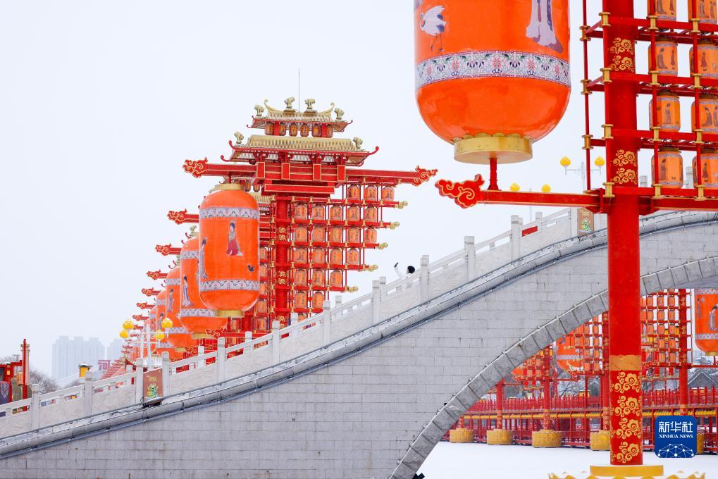 12月14日,河北唐山市民在丰南区河头老街拍摄雪景。