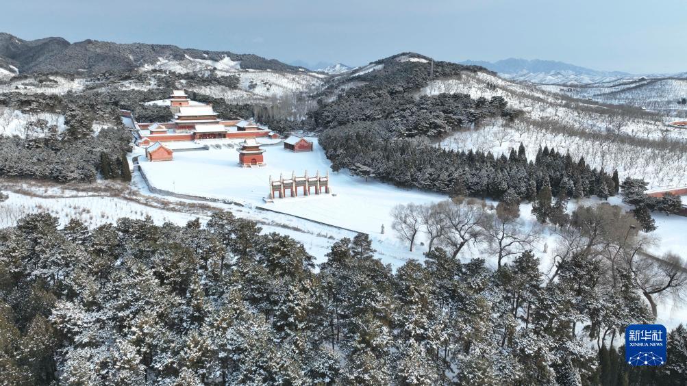12月15日在河北省遵化市拍摄的清东陵景区雪景(无人机照片)。