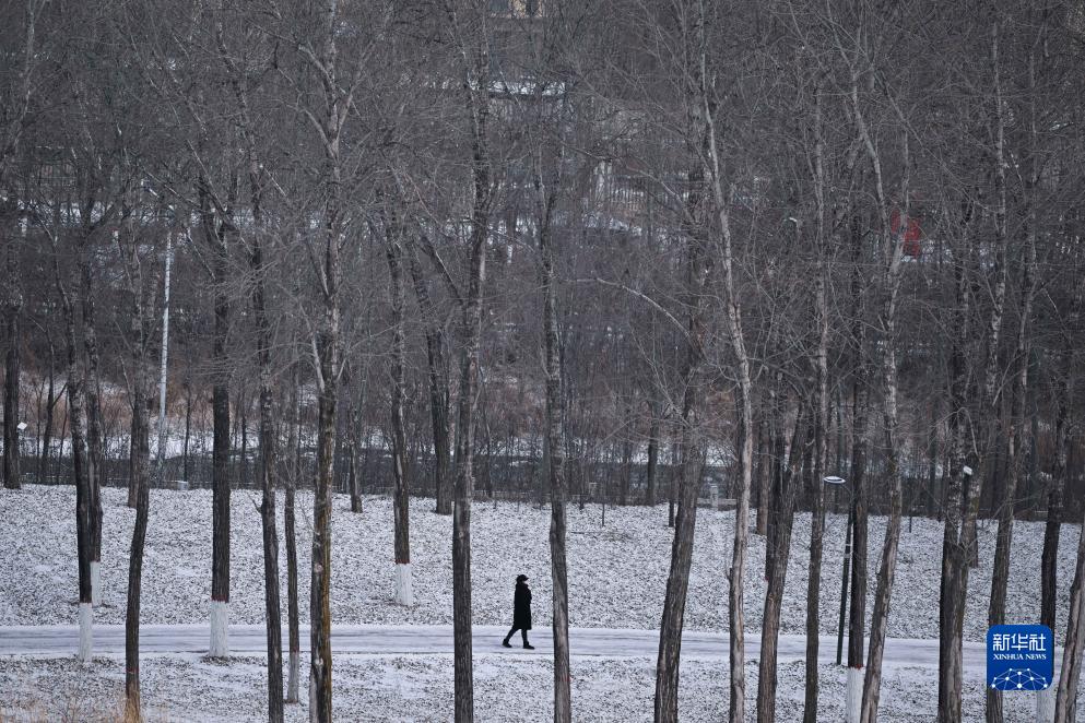 12月15日,市民行走在西宁市城西区一处公园内。