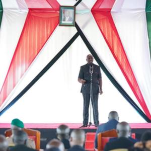 12月15日,在肯尼亚卡贾多郡,肯尼亚总统鲁托在开工仪式上讲话。