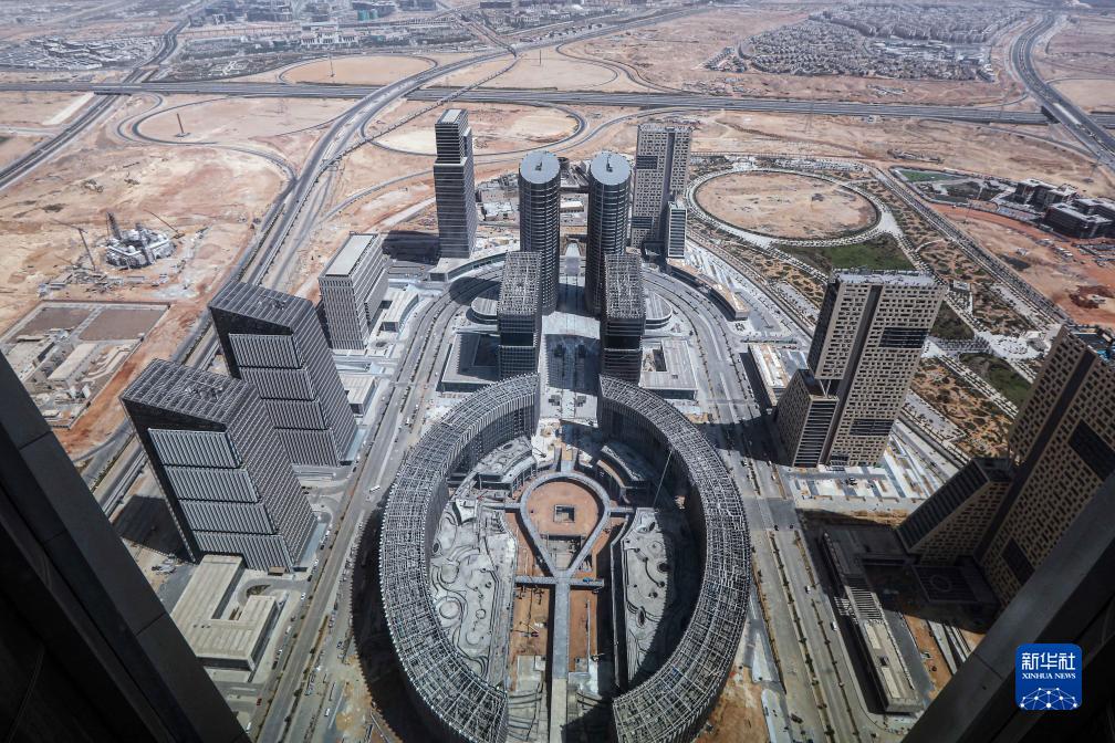 这是9月11日在埃及开罗以东拍摄的建设中的新行政首都中央商务区。由中国建筑股份有限公司埃及分公司承建的埃及新行政首都中央商务区项目位于现首都开罗以东约50公里处,总占地面积约50.5万平方米,包含20个高层建筑单体及配套市政工程。其中最引人注目的是“标志塔”项目,塔冠最高点385.8米,被誉为“非洲第一高楼”。