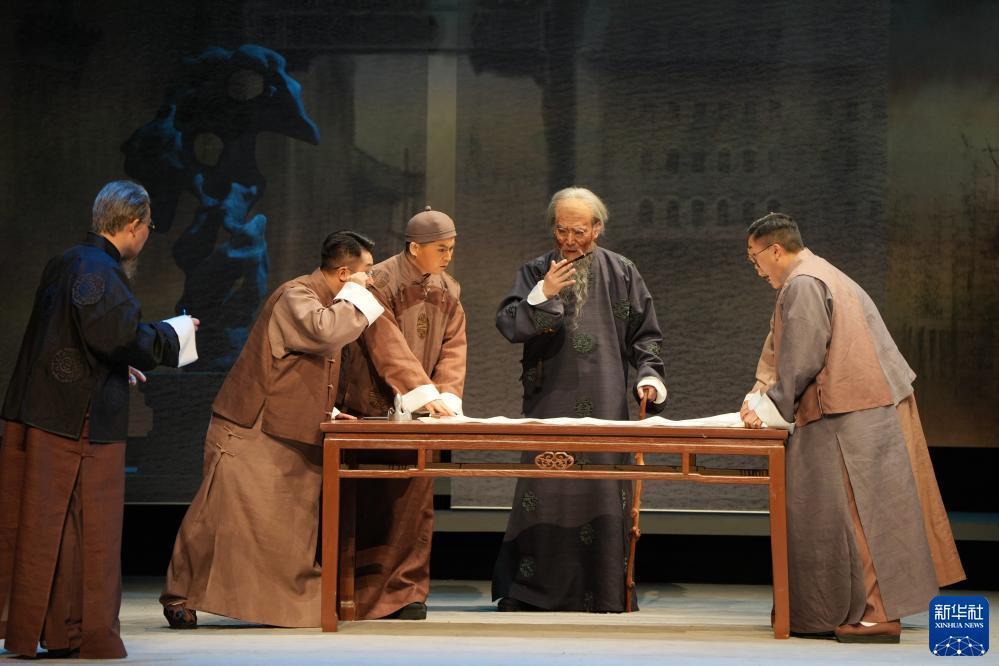 演员在北京长安大戏院表演新编京剧《齐白石》(12月16日摄)。
