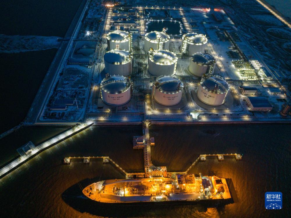 12月16日,满载6.5万吨液化天然气(LNG)的“北斗星”轮靠泊在中国石化天津LNG接收站进行卸船作业(无人机照片)。今年供暖季以来,中国石化天津LNG接收站已接卸12船约70万吨液化天然气,气化外输天然气7亿立方米,有力保障华北地区人民群众温暖过冬。