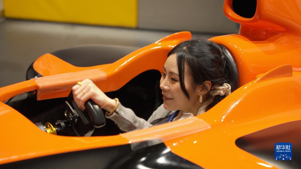 12月16日,参访团成员熊素婉体验三级方程式模拟驾驶器。