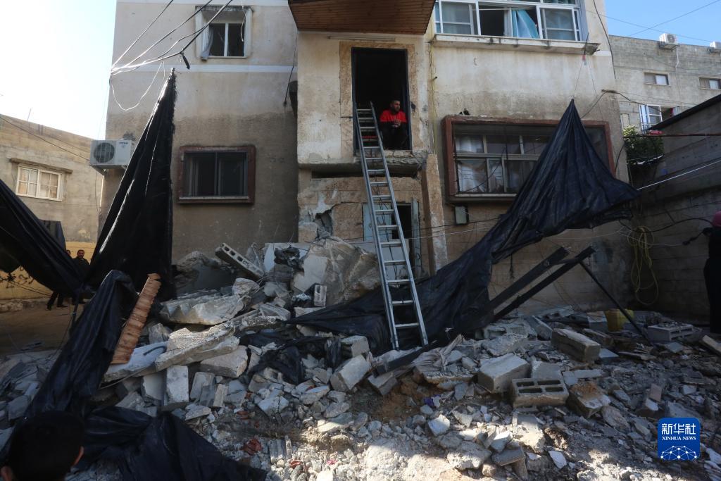 12月17日,在约旦河西岸城市图勒凯尔姆附近的一处难民营,人们查看在冲突中损毁的房屋。