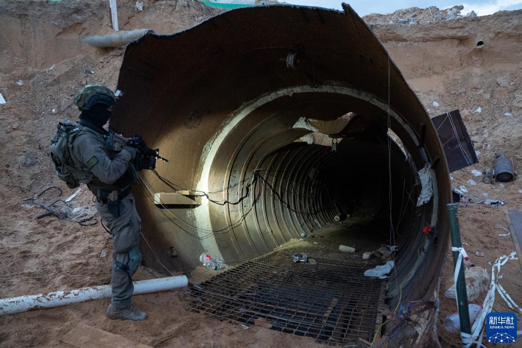 这张以色列国防军12月17日发布的照片显示,以军地面部队在加沙地带发现一处大型地下隧道。