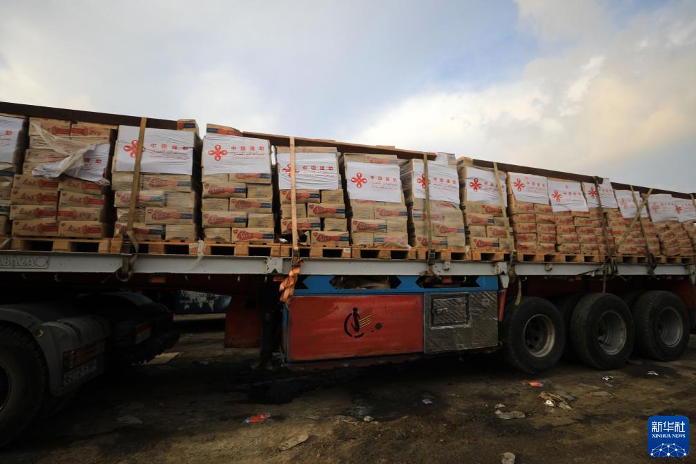12月17日,载有中国援助的人道主义物资的货车抵达凯雷姆沙洛姆口岸加沙地带一侧。
