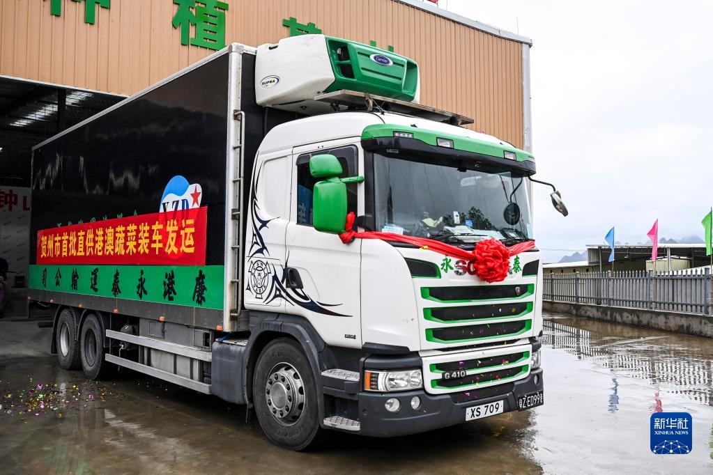 12月18日,在广西钟山县东融(供港)稻菜产业示范基地,载有蔬菜的货车发车驶往香港。