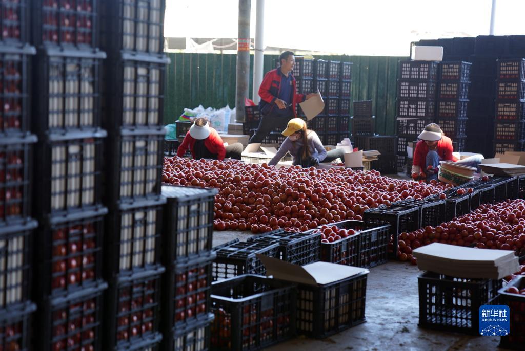 12月17日,云南省元谋县蔬菜交易中心,村民在挑拣西红柿。